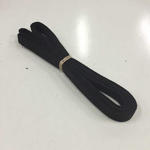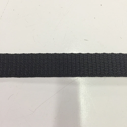 1/2" blacku00a0polypropylene webbing. This is a thin, non-load bearing webbing good for heavy duty tie-outs, pack loops, compression straps, carrying slings, etc.
