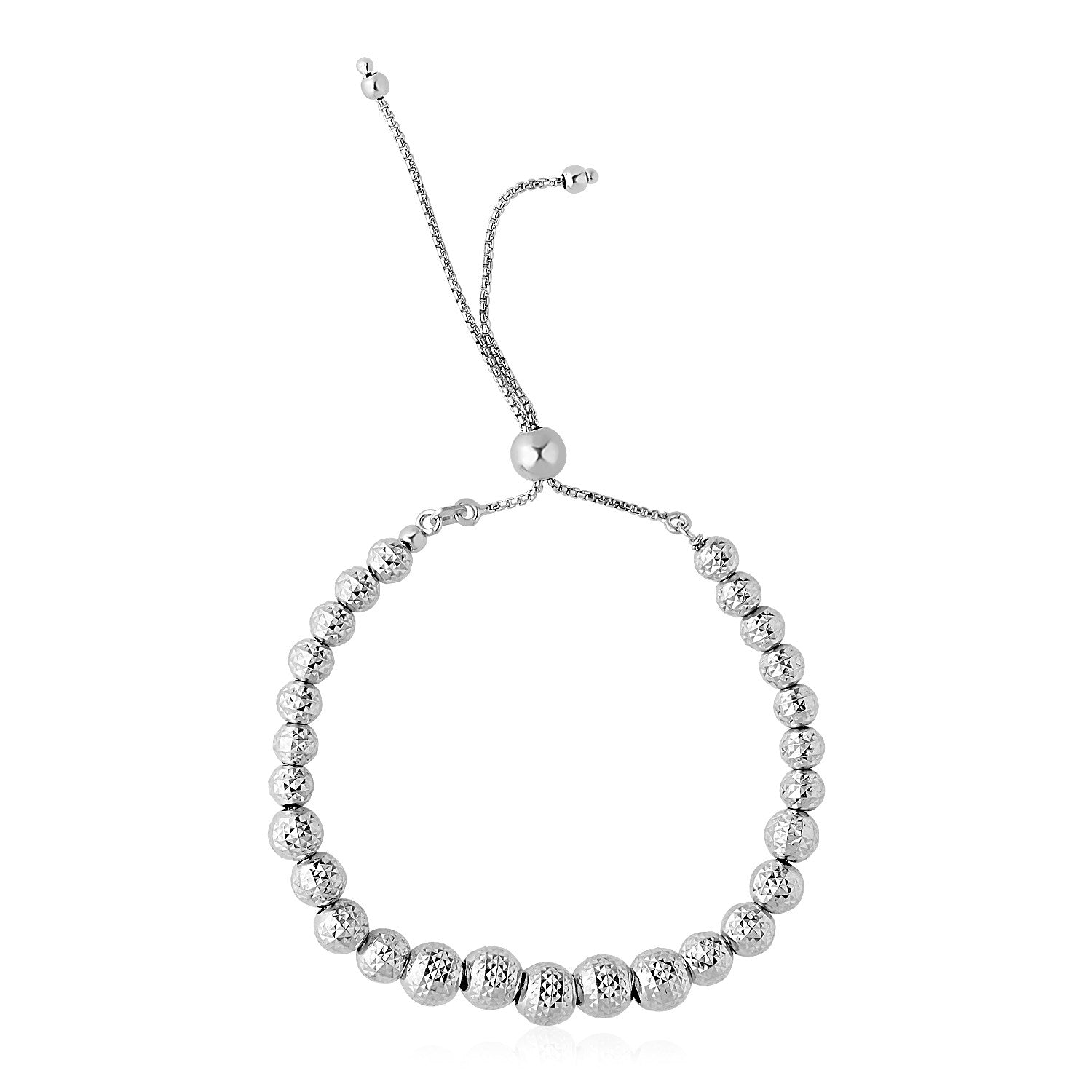 The texture and shine of beads give this sterling silver bracelet a sophisticated voice. Bracelet closes with a drawstring clasp.