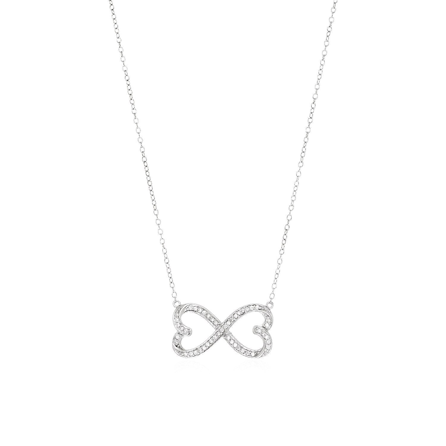 Double Heart Infinity Necklace with Cubic Zirconia in Sterling Silver