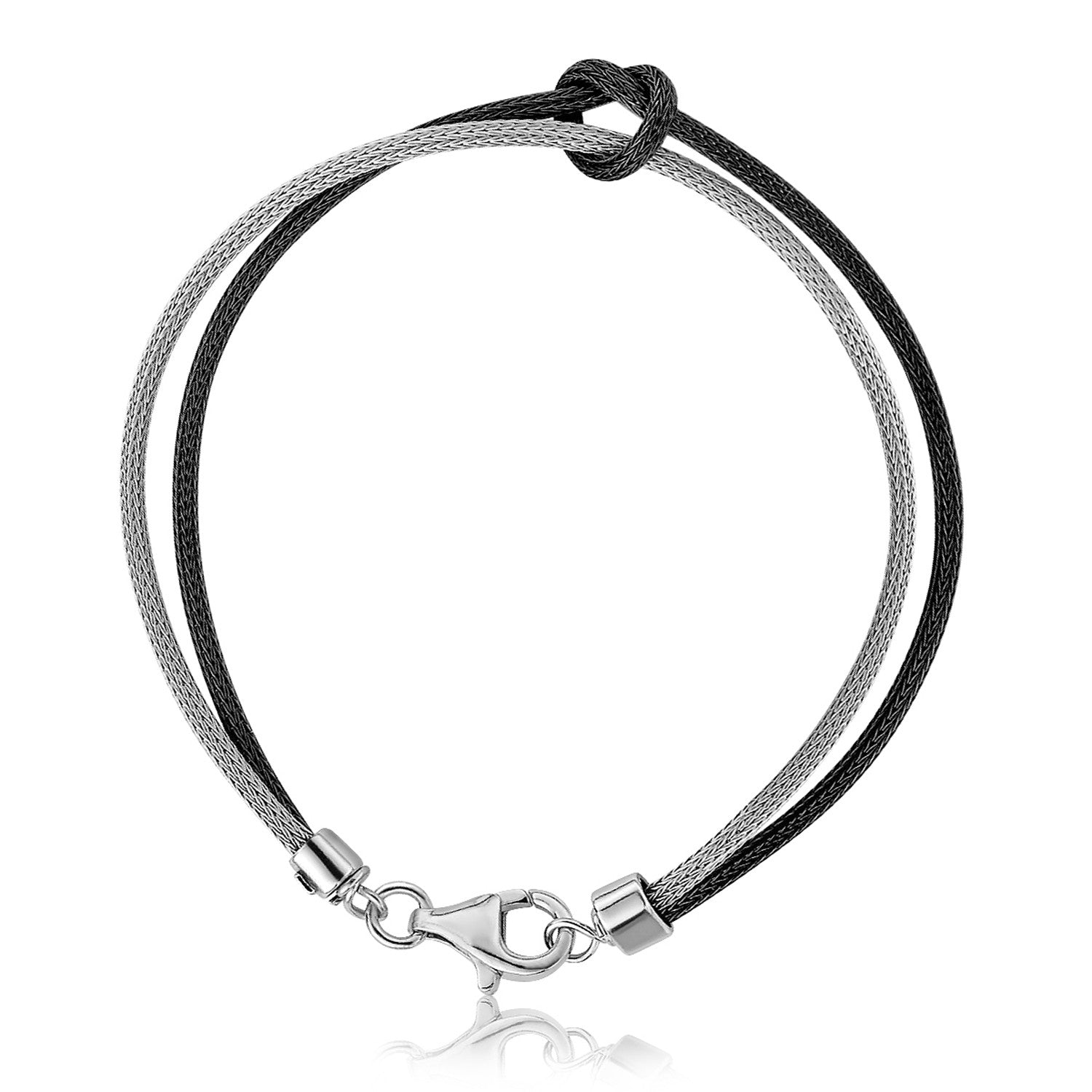Sterling Silver Rhodium and Ruthenium Plated Knot Motif Wheat Bracelet