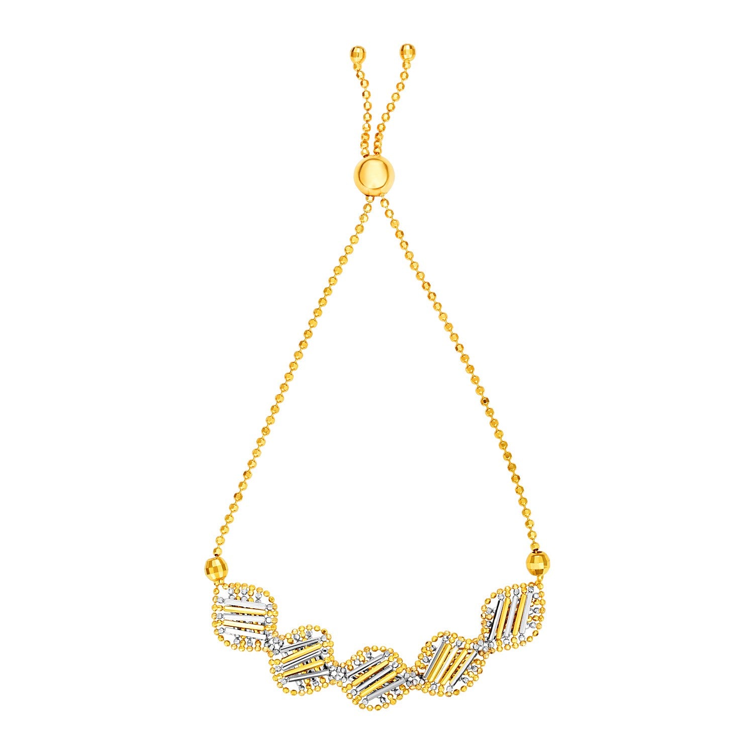 Textured Square Motif Adjustable Bracelet in 14k Yellow and White Gold